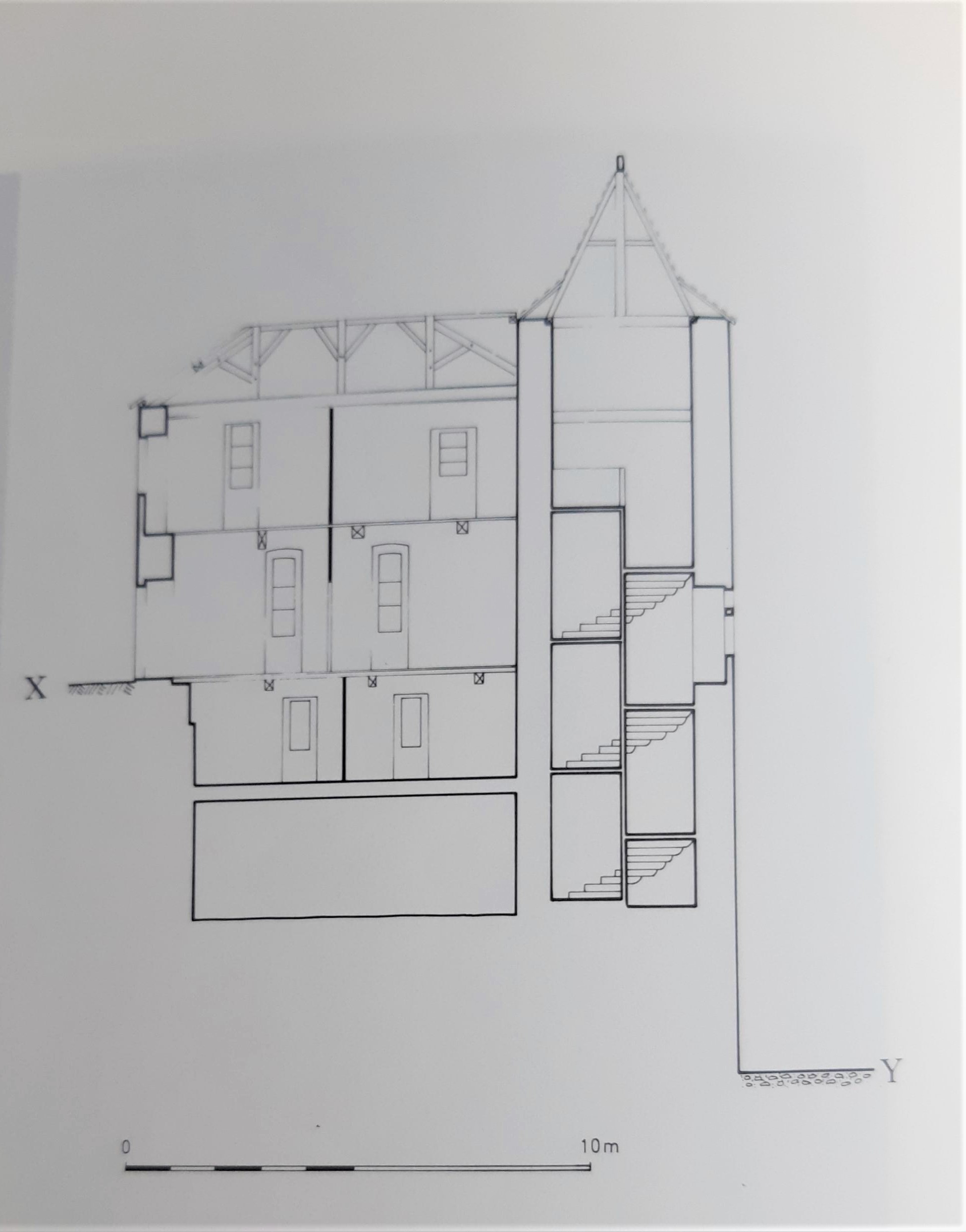 Il s’agit d’une forme de logis seigneurial urbain, qui s’apparente à une maison-forte. Une tour polygonale hors-œuvre, surmontée d’un toit en pavillon, accueille un escalier à vis en pierre qui dessert les quatre niveaux du corps de logis de forme rectangulaire. La surface de ce dernier est assez restreinte (environ 72 m2) (Noé-Dufour 1993, p. 142-143). La tour d’escalier s’ouvre par une large porte surmontée d’un arc en accolade retombant sur des colonnettes à bases prismatiques. La façade principale, qui donne au nord sur la rue, est scandée de plusieurs baies, dont la plus importante est celle du troisième niveau, qui correspond à l’étage noble d’habitation.