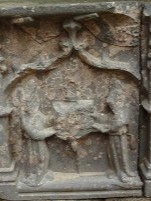 Plougonvelin, abbaye Saint-Mathieu, mur nord de la chapelle absidale, soubassement du tombeau présumé de Guillaume de Kerlec’h, vers 1470.