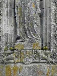 La Ferté-Milon, château. Armoirie d’Orléans (armoirie 1e) D'(azur) à trois fleurs de lys d'(or), au lambel d'(argent). Attribution : Orléans Louis Ier de ; Orléans familleTenants / Supports : Deux loups Position : Extérieur Pièce / Partie de l'édifice : Façade ; Tour Emplacement précis : Niche Support armorié : Cadre Structure actuelle de conservation : In situ Technique : Relief en pierre Période : 1401-1425 Dans le monument : La Ferté-Milon, château