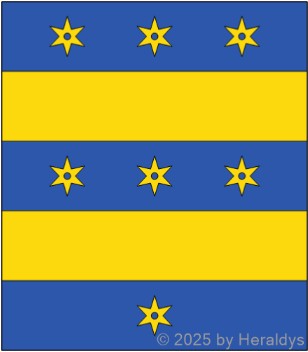 Saint-Lô, église Notre-Dame. Armoirie de Soule (armoirie 21) (D’azur à deux fasces d’or, accompagnées de sept molettes de même, posées 3, 3, 1). Attribution : Soule de famille Position : Intérieur Pièce / Partie de l'édifice : Bas-côté sud ; Chapelle Emplacement précis : Voûte Support armorié : Clef de voûte Structure actuelle de conservation : Pièce disparue Technique : Sculpture en pierre Période : Datation inconnue Dans le monument : Saint-Lô, église Notre-Dame