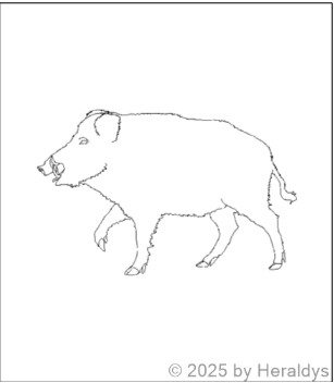 Fascé d’or et d’azur (ici de sable) de 6 pièces, au chef tiercé en pal, au 1 tranché d’or et d’azur (ici de sable), au 2 palé d’or et d’azur (ici d’azur), au 3 taillé d’or et d’azur (ici de sable), à l’écusson d’argent à la bande de gueules.