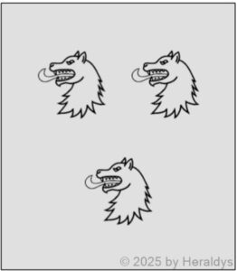 (D’or à trois pigeons alias colombes alias merlettes d’azur (alias d’or à la fasce d’azur accompagnée de six pigeons alias colombes alias merlettes d’azur)).