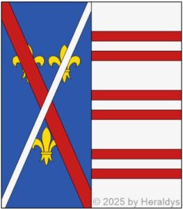 De (gueules) à la tour d’(argent), crénelée, maçonnée et ouverte de…, au chef de (gueules) à la croix d’(argent) (Ordre de Saint-Jean de Jérusalem ou de Malte).