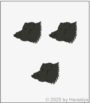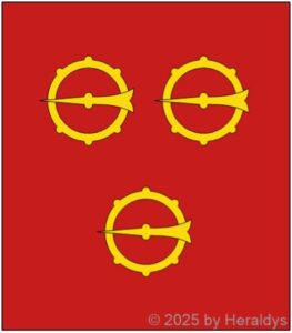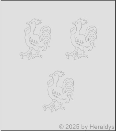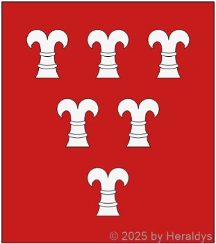 (De gueules à six rocs d’argent, disposés 3, 2, 1).
