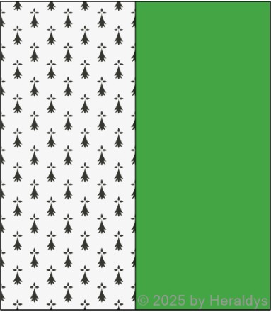 (De gueules à la fasce d’azur accompagnée de deux étoiles en chef et d’une moucheture d’hermine d’argent en pointe).