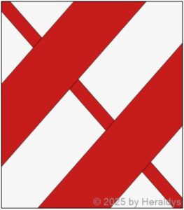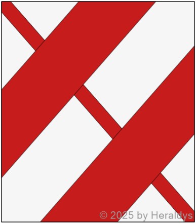(Burelé d’argent et d’azur, à la bande de gueules brochant sur le tout).