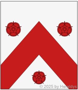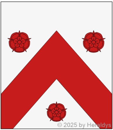 (D’argent au chevron de gueules, accompagné de trois roses du même).