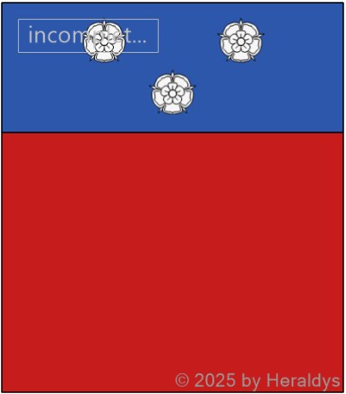 (De gueules au chef cousu d’azur, chargé de trois roses d’argent, disposées 2 et 1).