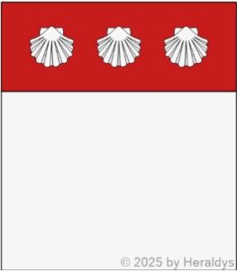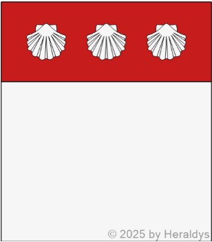(D’argent au chef de gueules chargé de trois coquilles d’argent).