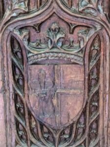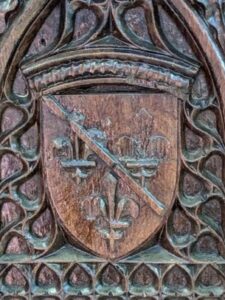 • Timbre : Une crosse épiscopale/d'abbé ; Une mitre avec fanons